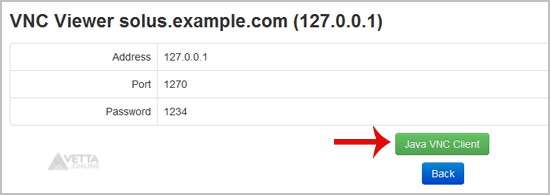 4. The new VNC page will open. Click on “Java VNC Client” or on “VNC”.