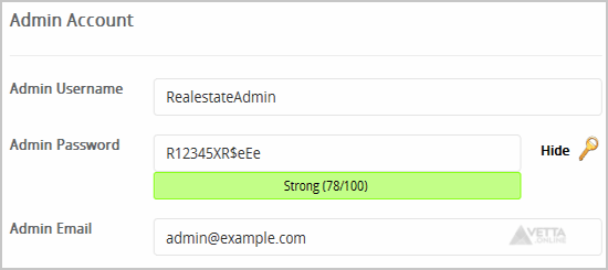 - Admin Username: Your new Open Real Estate username (for security reason do not use the “Administrator” or the “Admin” username.)