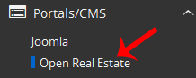 4. On the left side of your screen you should locate the “Portal/CMS” category. Click on it and then click on the “Open Real Estate” link that will appear.